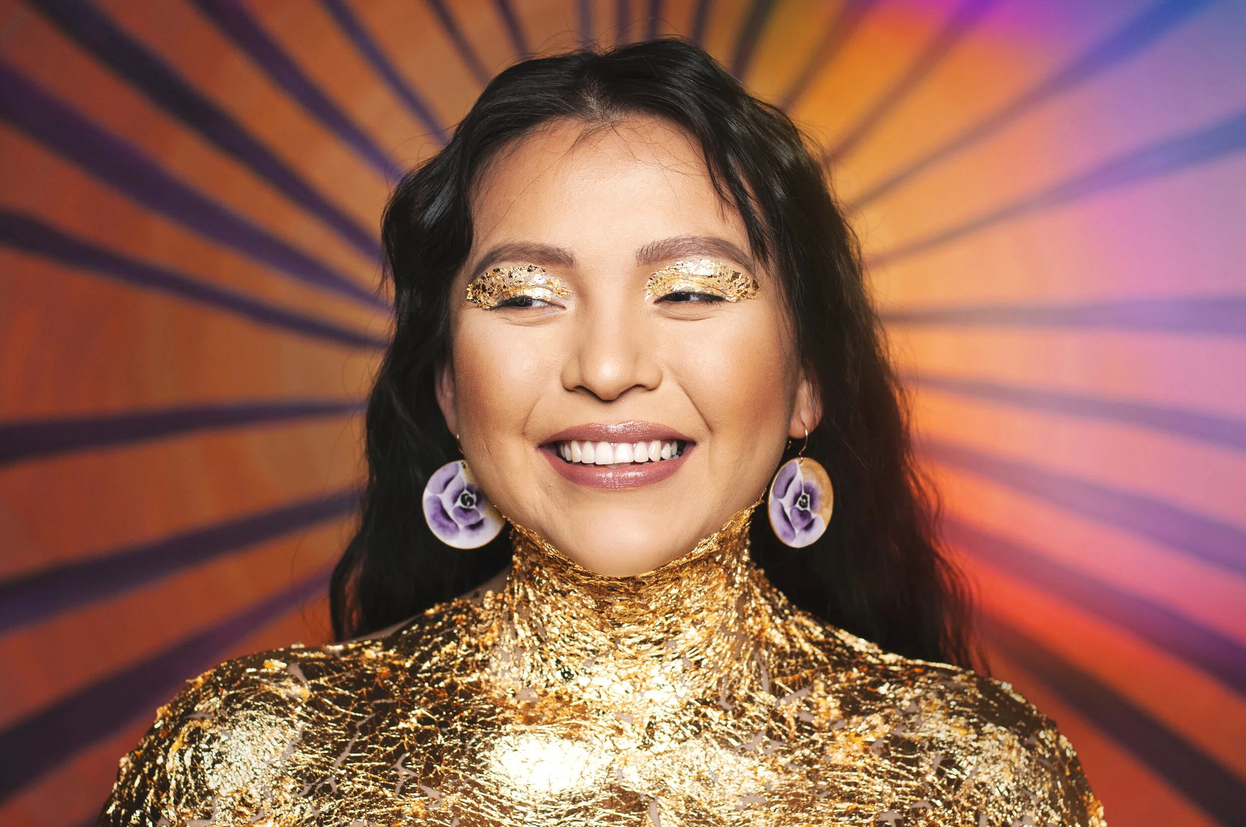 Gold & Floral Inspiration brought to life by the multi-talented artist Hannah Manuelito, modeled by writer and artist, Chael Moore.